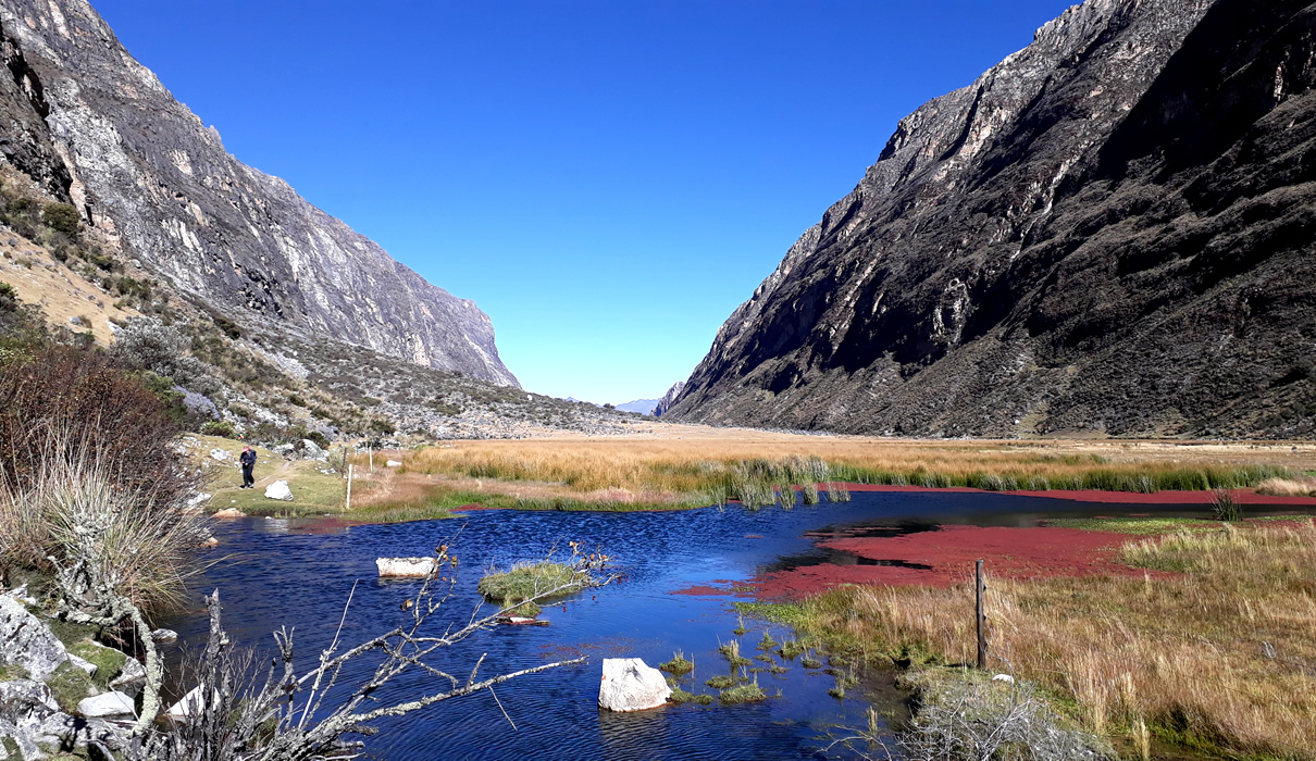 Día 1: Huaraz 3100m. - Caraz 2290m. - Cashapampa 2970m. - Llamacorral 3760m.Salida 7:00am en vehículo privado, nos trasladaremos hacia el Valle del Callejón de Huaylas pasando por los provincia de Tarica, Marcara, Carhuaz, Yungay y Caraz (2290m.) (3 horas aprox.), punto de donde iniciaremos nuestra caminata por un valle flanqueado por paredones de roca cubierto por una vegetación única, con un clima cálido a medida que se va ascendiendo por el valle se va ampliando mostrándonos el increíble paisaje montañoso con singulares especies de flora y fauna, para así llegar al campamento Llamacorral (3760m.), donde pernoctaremos (6 a 7 horas aprox.).